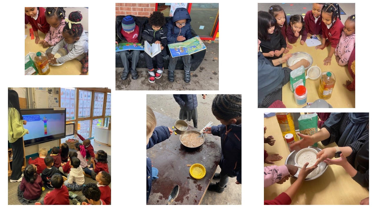 Children develop their literacy skills by the imitation of stories that they learn using actions and story mapping techniques. They then move onto innovation of these well-known stories by including their own ideas. Literacy and Phonics opportunities are also promoted in many of the continuous provision activities available to children during the week. The Early Years uses high quality texts as a basis for topic planning and usually start with an exciting hook to engage children in both the topic and the book.